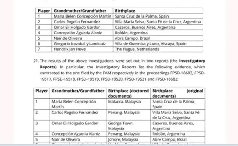 FIFA đã đưa ra hồ sơ gốc ông bà của 7 tuyển thủ và hồ sơ bị sai lệch, nhưng FAM vẫn muốn kháng cáo nhiều nơi.
