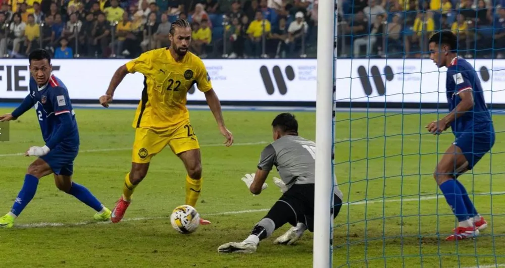 Corbin Ong (22) của đội tuyển Malaysia góp 1 bàn trong chiến thắng 4-0 trước Việt Nam ngày 10-6. Ảnh:AFC