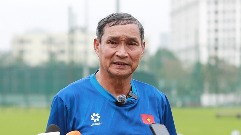 Huấn luyện viên Mai Đức Chung trả lời phỏng vấn tại buổi tập ngày 26/2. (Ảnh: VFF)
