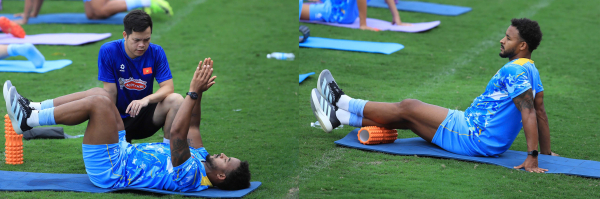 Dù chưa có đầy đủ quân số, buổi tập của Đội tuyển Quốc gia (ĐTQG) Việt Nam vẫn được triển khai theo đúng giáo án của Ban huấn luyện. Nhóm cầu thủ vừa thi đấu trở về chủ yếu thực hiện các bài hồi phục, trong khi những cầu thủ còn lại được rèn luyện thêm về chiến thuật nhằm tăng cường sự gắn kết trong lối chơi. Tiền đạo Nguyễn Xuân Son do đau nhẹ cũng chỉ tập hồi phục để sớm đạt trạng thái thể lực tốt nhất.