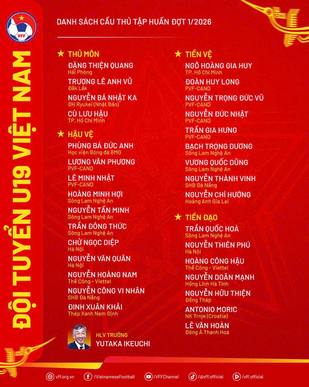 Đây đều là những cầu thủ đã tích lũy được kinh nghiệm thi đấu ở cấp độ trẻ và được kỳ vọng sẽ đóng vai trò quan trọng trong lực lượng ĐT U19 Việt Nam trong thời gian tới.