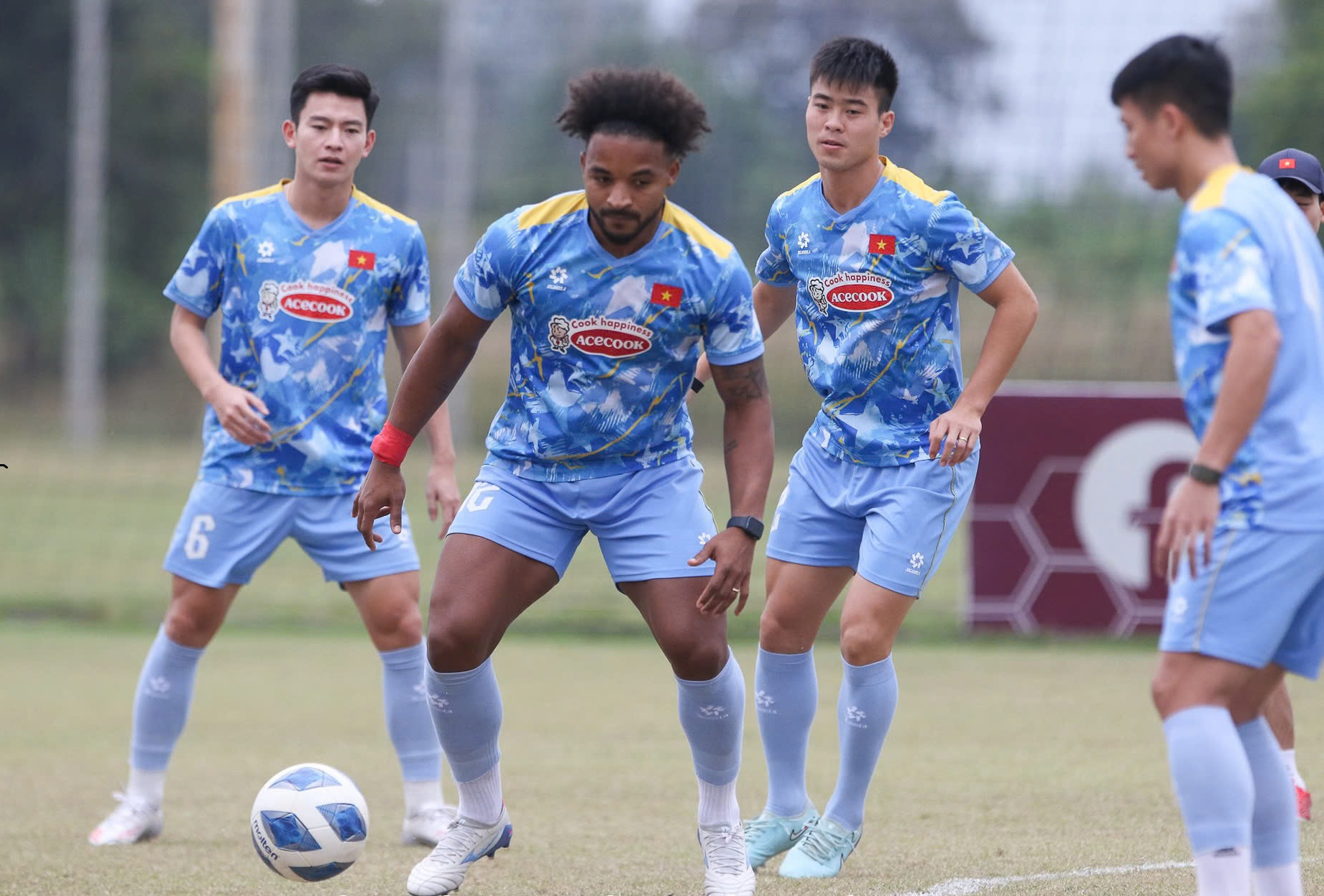 Xuân Son tích cực tập luyện cùng đội tuyển Việt Nam. Ảnh: VFF