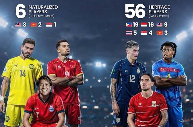 Bên cạnh phân khúc nhập tịch 100%, nguồn lực từ các cầu thủ con lai (heritage players) cũng đang được khai thác triệt để. Philippines tiếp tục giữ vị thế thống trị với 19 cầu thủ con lai trong đội hình, một chiến lược xuyên suốt nhiều thập kỷ qua của quốc gia này. Indonesia xếp ngay sau với 16 cầu thủ, phần lớn mang gốc gác Hà Lan. Đây được xem là "chìa khóa vàng" giúp đội bóng xứ vạn đảo lột xác hoàn toàn, lần đầu tiên ghi tên mình vào vòng loại thứ 4 World Cup 2026.
