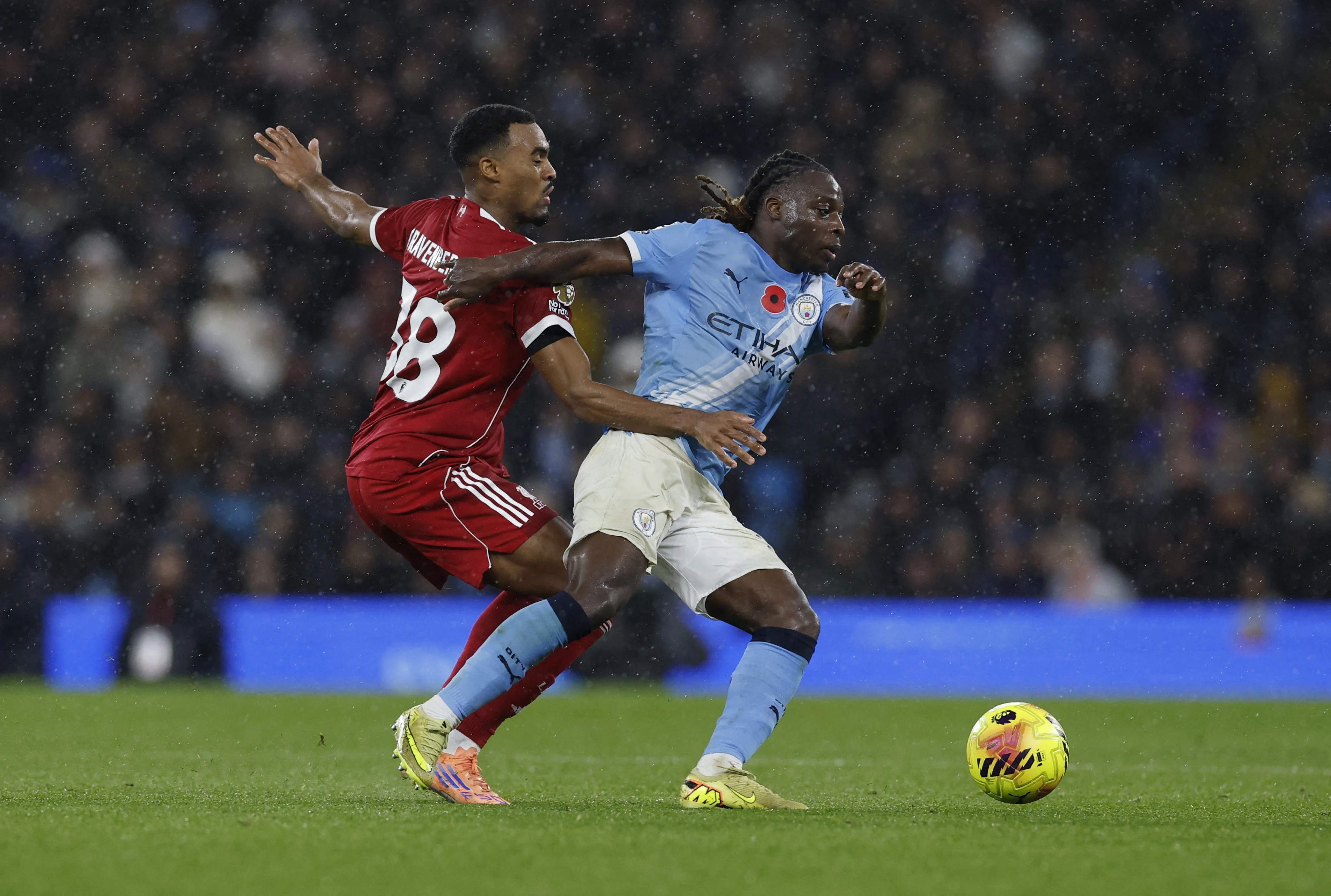 Phút ấn tượng nhất đến khi Doku loại bỏ Konate, ngoặt bóng vào trung lộ và cứa lòng từ rìa vòng cấm. Quả bóng găm thẳng vào góc xa khung thành Mamardashvili. Cú sút ấy làm cả Etihad vỡ òa. Đó là bàn thắng thứ ba của Doku mùa này, và là lần thứ bảy anh góp dấu giày vào các bàn thắng của Man City.