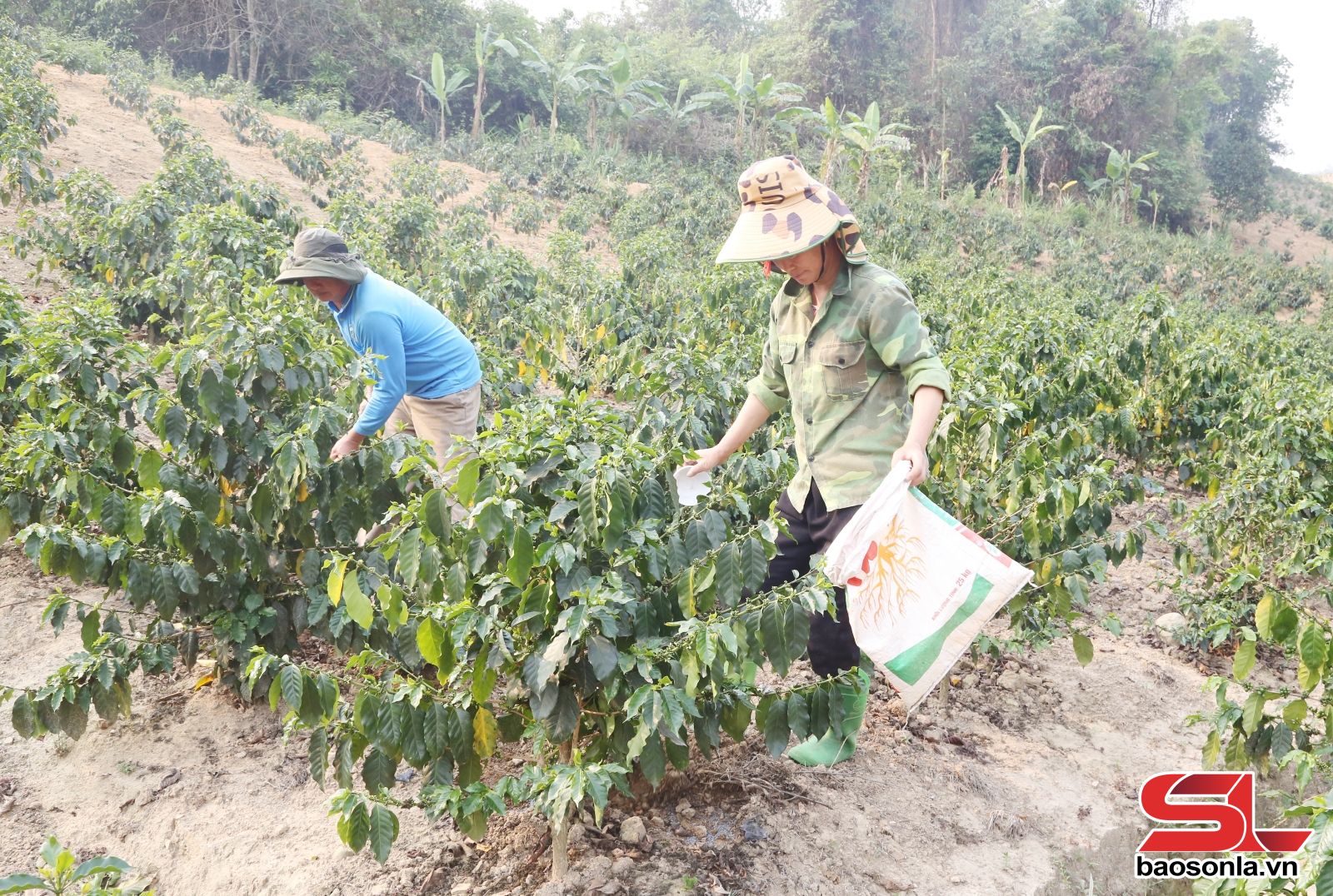 Nông dân bản Púng, xã Púng Bánh chăm sóc cây cà phê.