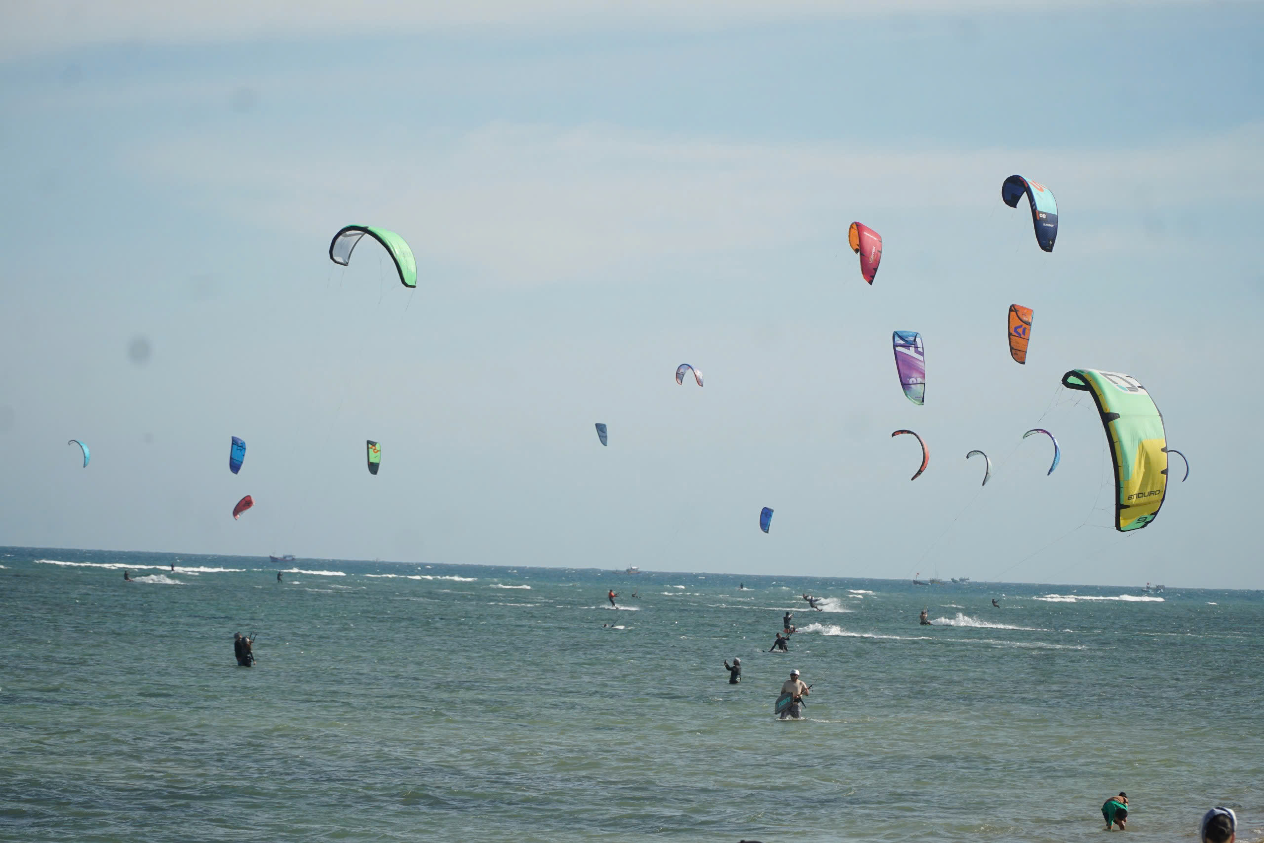 Các vận động viên lướt ván diều trình diễn trên biển Khánh Hòa.