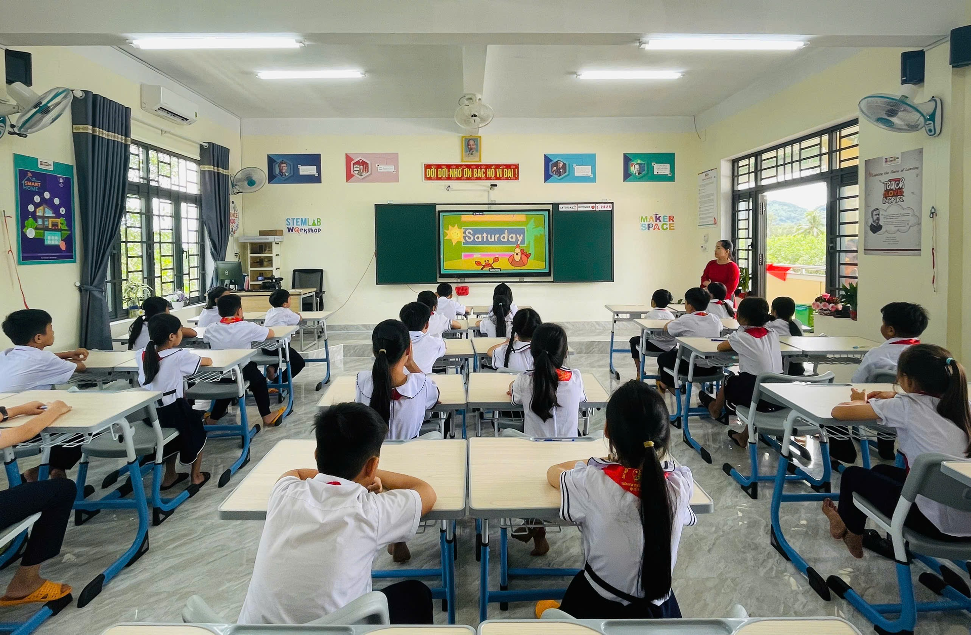 Đưa vào hoạt động mô hình lớp học số tại Trường Tiểu học Quế Phong (xã Quế Sơn). Ảnh: PV