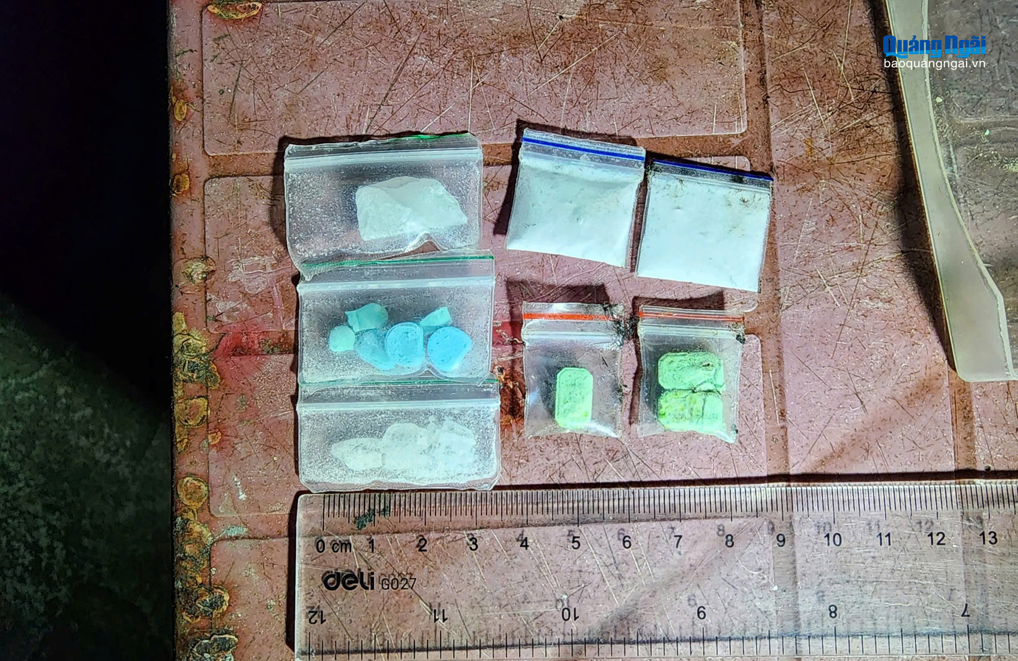 Tiến hành truy đuổi và kiểm tra, lực lượng tuần tra phát hiện ông C tàng trữ 3 túi nilon, bên trong chứa chất tinh thể màu trắng và 7 viên nén màu xanh. Kiểm tra xe ô tô đối tượng Công thuê để di chuyển, lực lượng tuần tra tiếp tục phát hiện tại vị trí ghế ngồi có 2 túi nilon chứa chất tinh bột màu trắng và 3 viên nén màu xanh.