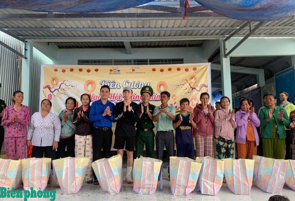 Đồn Biên phòng Đất Mũi phối hợp với các đơn vị và mạnh thường quân tặng quà cho người dân trên địa bàn. Ảnh: Văn Hoàng
