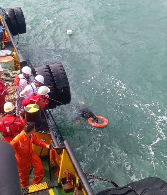 Thuyền trưởng Kiều Quang Lục cùng các nhân viên trên tàu đã cứu vớt và chở ngư dân gặp nạn về cảng PTSC bàn giao cho đơn vị.