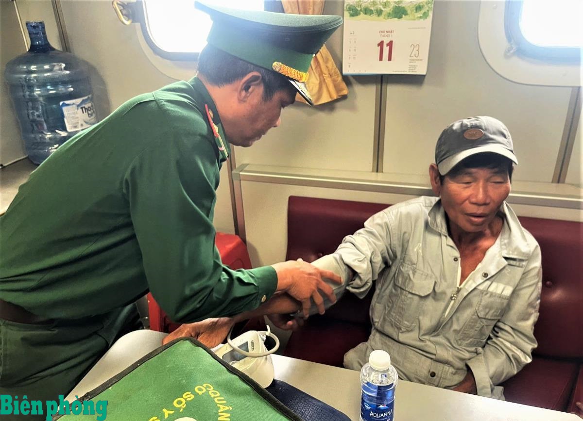 Quân y Đồn Biên phòng cửa khẩu cảng Dung Quất chăm sóc sức khỏe cho ông Vũ. Ảnh: Văn Tánh