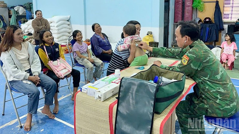 Cạnh đó, lực lượng quân y của đơn vị cũng tổ chức khám, phát thuốc cho 20 người dân có triệu chứng ho, sốt do thời tiết lạnh, ẩm kéo dài. Ngoài bảo đảm bữa ăn và sức khỏe cho bà con, lực lượng Biên phòng thường xuyên tuyên truyền, động viên người dân yên tâm ở lại khu vực tránh trú, hạn chế di chuyển qua các điểm sạt lở nguy hiểm.