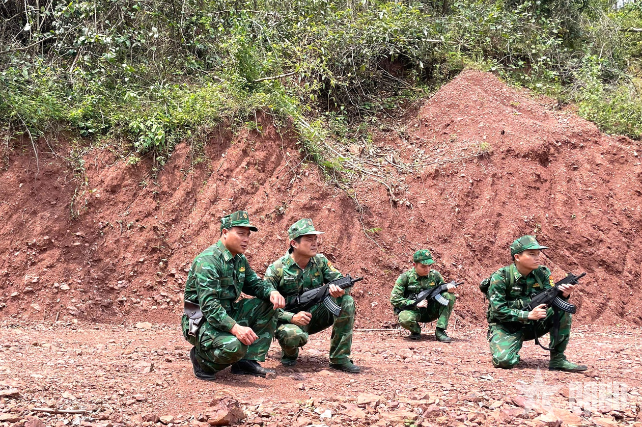Các thành viên đội tuần tra quan sát biến động trong tuần tra bảo vệ biên giới.
