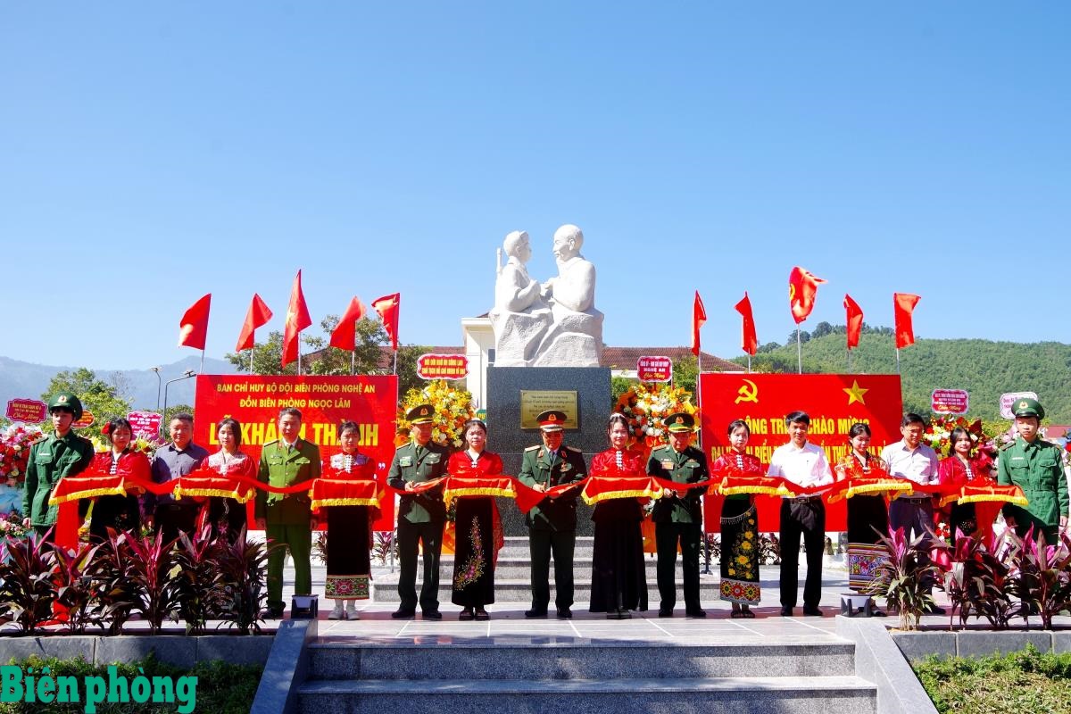 Các đại biểu cắt băng khánh thành Tượng đài “Bác Hồ với chiến sĩ Biên phòng”. Ảnh: Hải Thượng