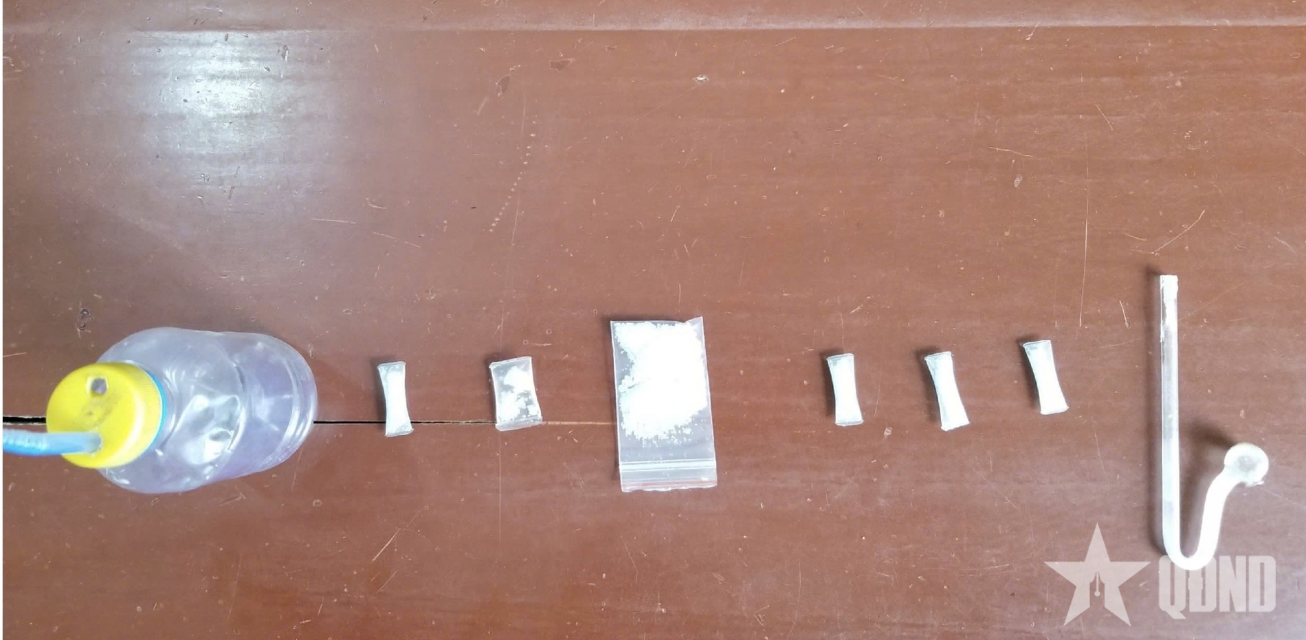 Tang vật thu giữ tại hiện trường gồm 1 gói nylon, 2 đoạn ống nhựa chứa các hạt tinh thể màu trắng. Qua khai thác nhanh, đối tượng thừa nhận số tang vật trên là ma túy đá.
