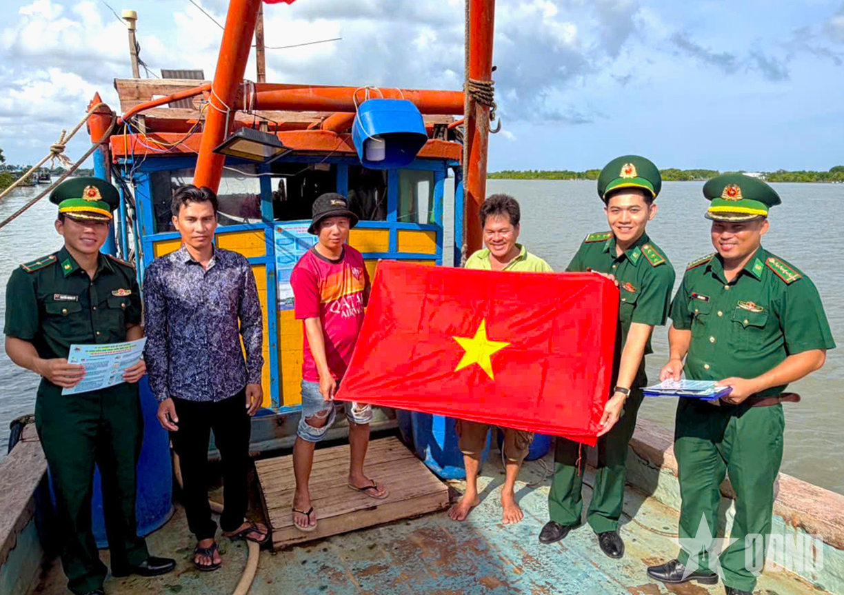 Tặng cờ Tổ quốc động viên ngư dân an tâm vươn khơi bám biển.