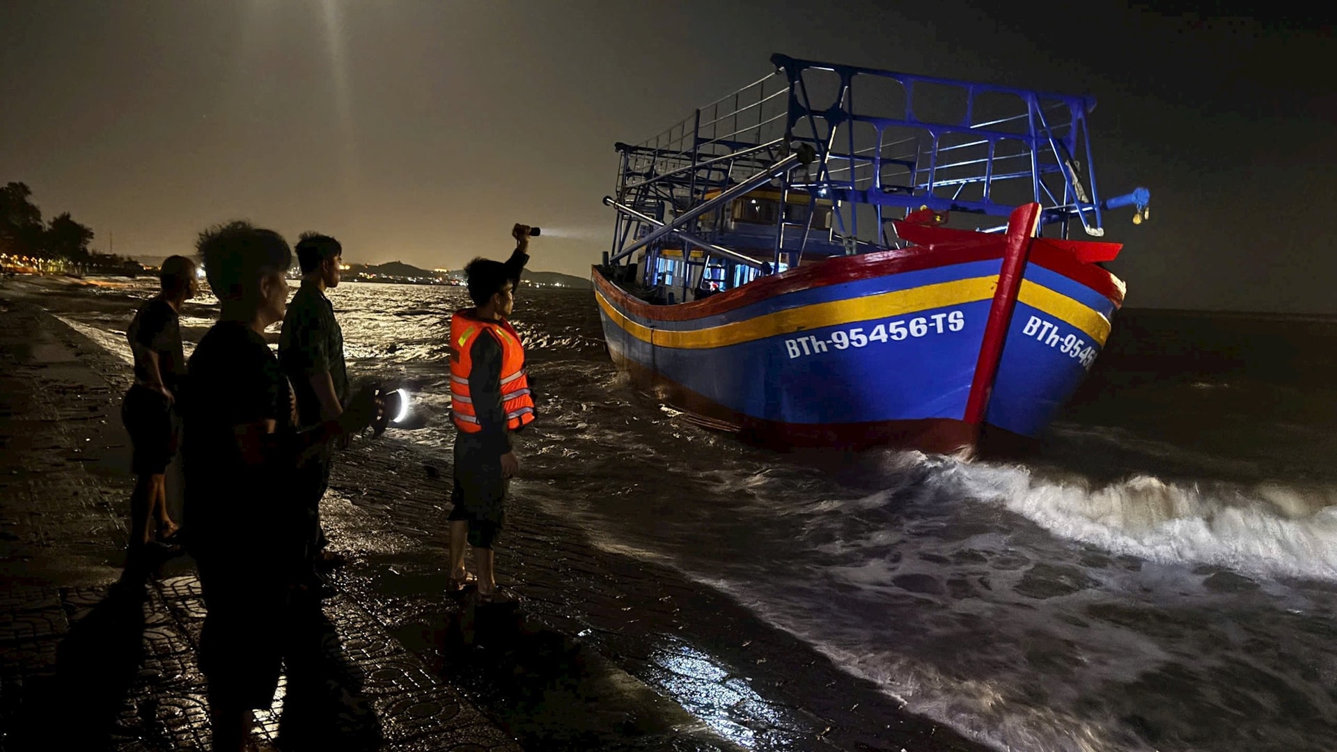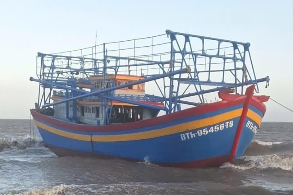 Tàu cá bị mắc cạn ở bão biển Đồi Dương (phường Phan Thiết)