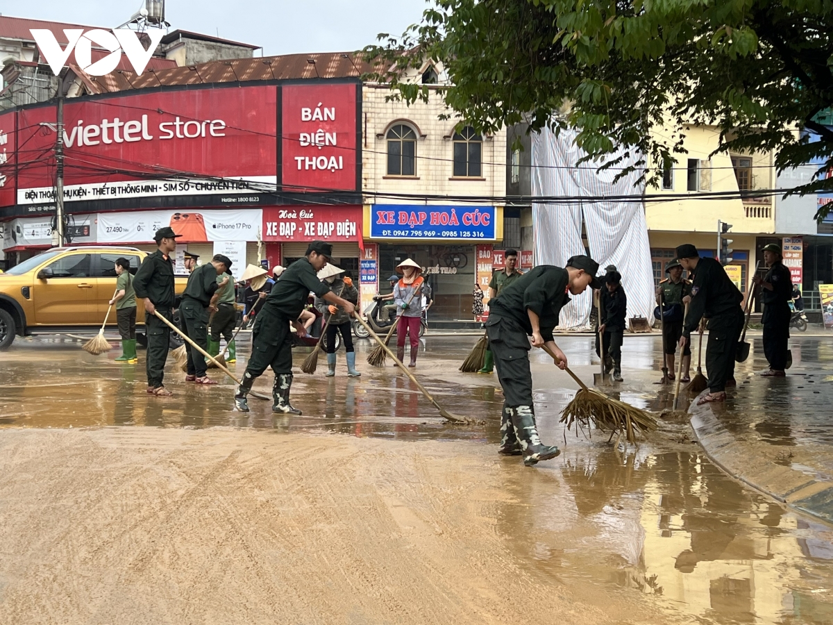 Thượng tá Đào Quang Hưng, Phó Tham mưu trưởng, Bộ chỉ huy Quân sự tỉnh Lào Cai cũng cho biết, nước rút đến đâu, cán bộ, chiến sỹ giúp nhân dân dọn dẹp đường phố, nhà cửa đến đó. Hàng trăm cán bộ, chiến sỹ đã tỏa đi khắp các đường phố, khu dân cư, không quản ngại khó khăn, vất vả với mong muốn người dân vùng lũ sớm ổn định đời sống.