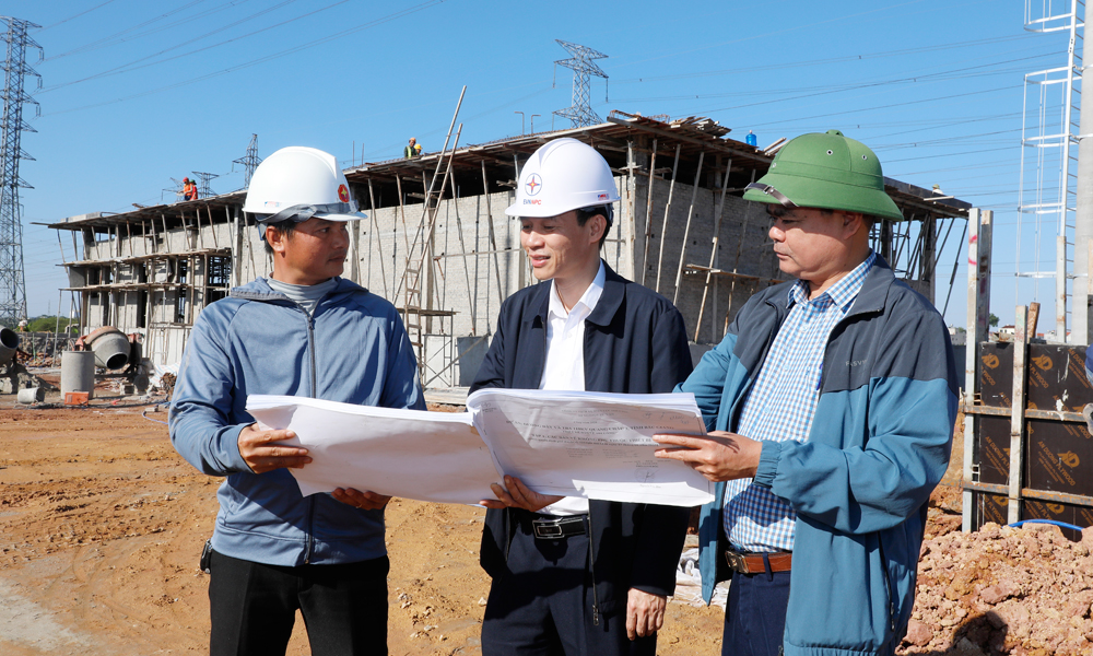 Đại diện lãnh đạo Công ty Điện lực Bắc Ninh kiểm tra tiến độ xây dựng dự án đường dây và trạm biến áp 110 kV Quang Châu 3 (phường Nếnh).