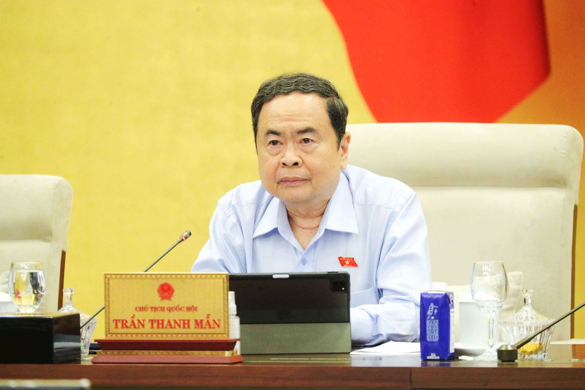 Chủ tịch Quốc hội Trần Thanh Mẫn phát biểu tại Phiên họp. Ảnh: H. LONG