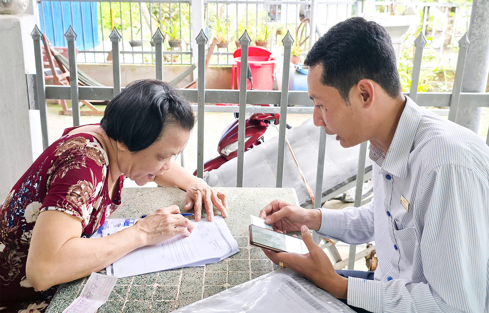 Bà Lố bệnh nằm liệt nhiều năm. Nắm tay cán bộ xã, bà Lố nghẹn ngào: “Lâu nay, tôi muốn ký giấy ủy quyền mà không đi nổi. Giờ mấy chú, mấy cô tới tận nhà giúp, tôi mừng lắm”. Chị Lê Thị Bé Sinh - người được bà Lố ủy quyền, vui khi cán bộ ngân hàng đi cùng đoàn hỗ trợ mở thẻ ATM. “Có thẻ ATM khi cần là tôi có thể rút tiền bảo trợ ngay”, chị Sinh nói.