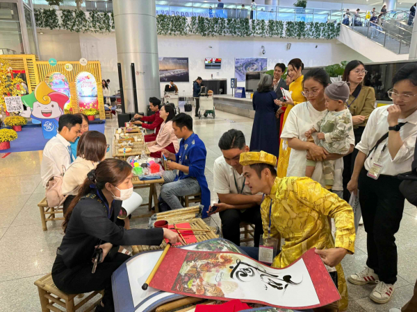 Lễ đón khách năm nay được tổ chức với các hoạt động trải nghiệm văn hóa đặc sắc: Những vị khách đầu tiên của năm mới và du khách sẽ được đắm mình trong không khí Tết cổ truyền với tiểu cảnh Chợ Bến Thành, hoa mai vàng, hoa cúc rực rỡ cùng cụm chữ “I Love Vibrant HCMC”; Ngay khi vừa hạ cánh, du khách có thể tham gia thưởng thức trà đạo, bánh mứt ngày Tết, xem ông đồ viết thư pháp, nặn tò he và chụp hình lưu niệm cùng hai biểu tượng vui của du lịch thành phố - Bé Sao và Bé Nón.