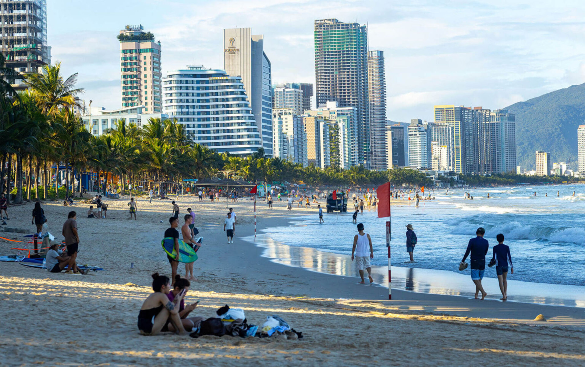 Du khách thích thú trải nghiệm không khí trong lành, yên bình tại biển Đà Nẵng