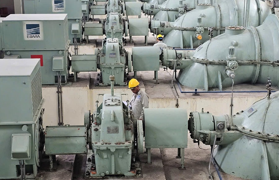Nhân viên vận hành hệ thống tại Trạm bơm Yên Sở.