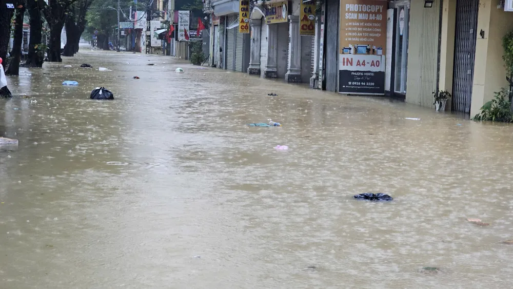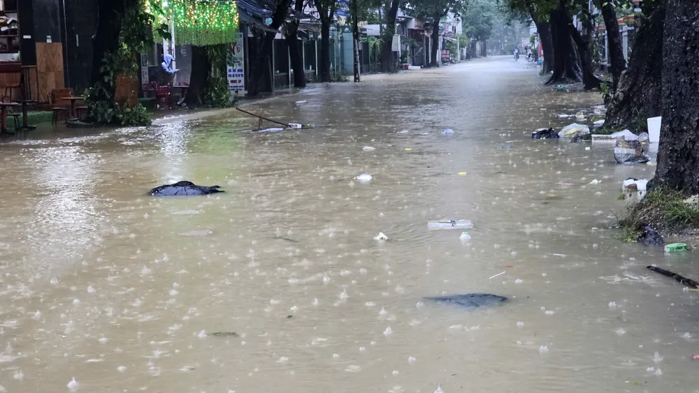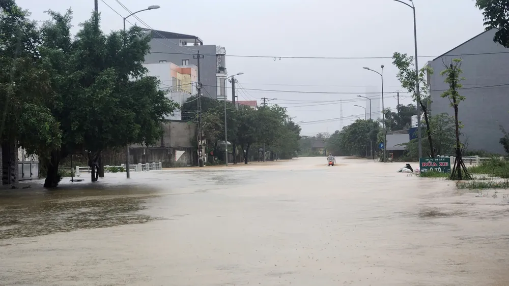 Một số đường ở khu vực trung tâm TP Huế đang bị ngập sâu trong nước.