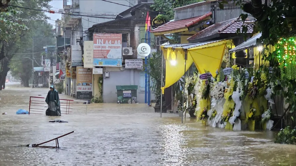 Nhiều đường bị ngập khiến giao thông không thể đi lại.