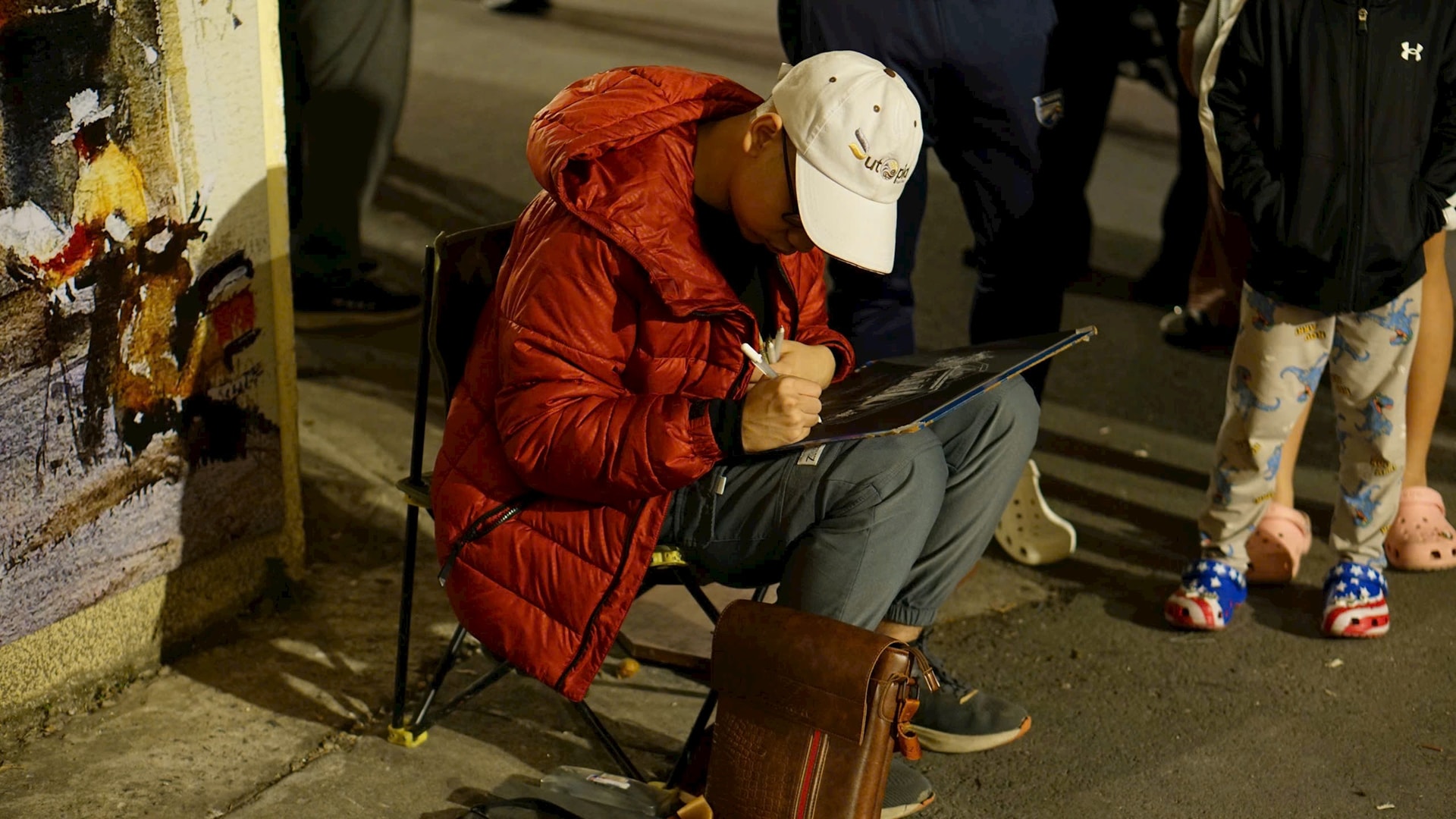 Du khách dừng chân ký họa tại xóm Hà Hồi. Ảnh: Trung Nguyên