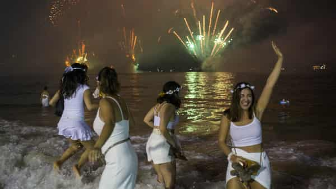 Tại Rio de Janeiro (Brazil), không chỉ có pháo hoa lung linh, mà phong tục vui nhộn nhảy qua bảy con sóng biển vào đêm giao thừa cũng được nhiều người yêu thích. Mỗi bước nhảy tượng trưng cho một ngày trong tuần và là lời cầu chúc bình an, may mắn. Người tham dự thường mặc đồ trắng - biểu tượng của hòa bình và khởi đầu mới - và dâng hoa lên vị thần biển Yemanjá.