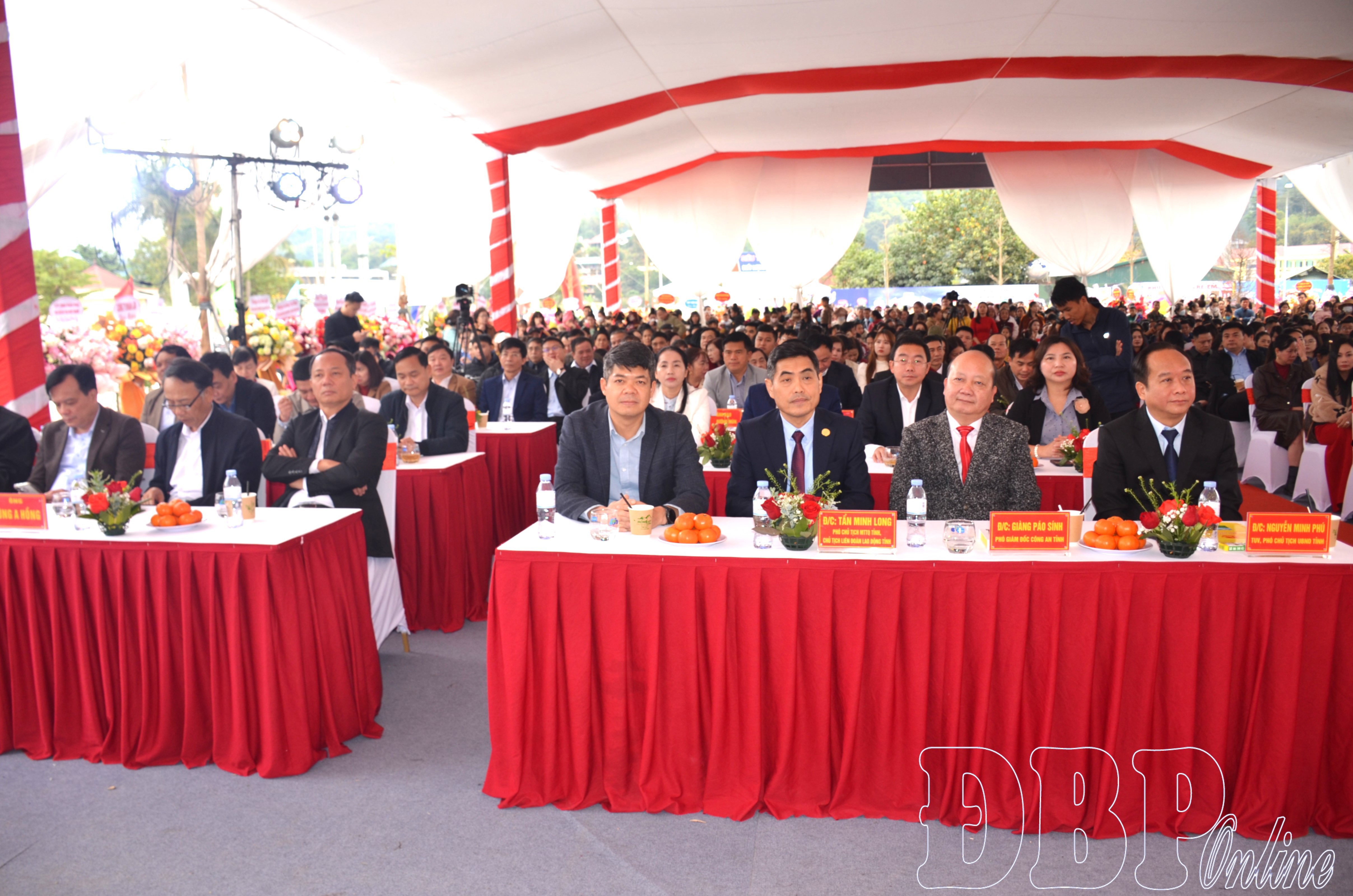 Các đại biểu tham dự Lễ đón nhận Bằng khen của Thủ tướng Chính phủ và khai trương Siêu thị Hoa Ba Tuần Giáo.