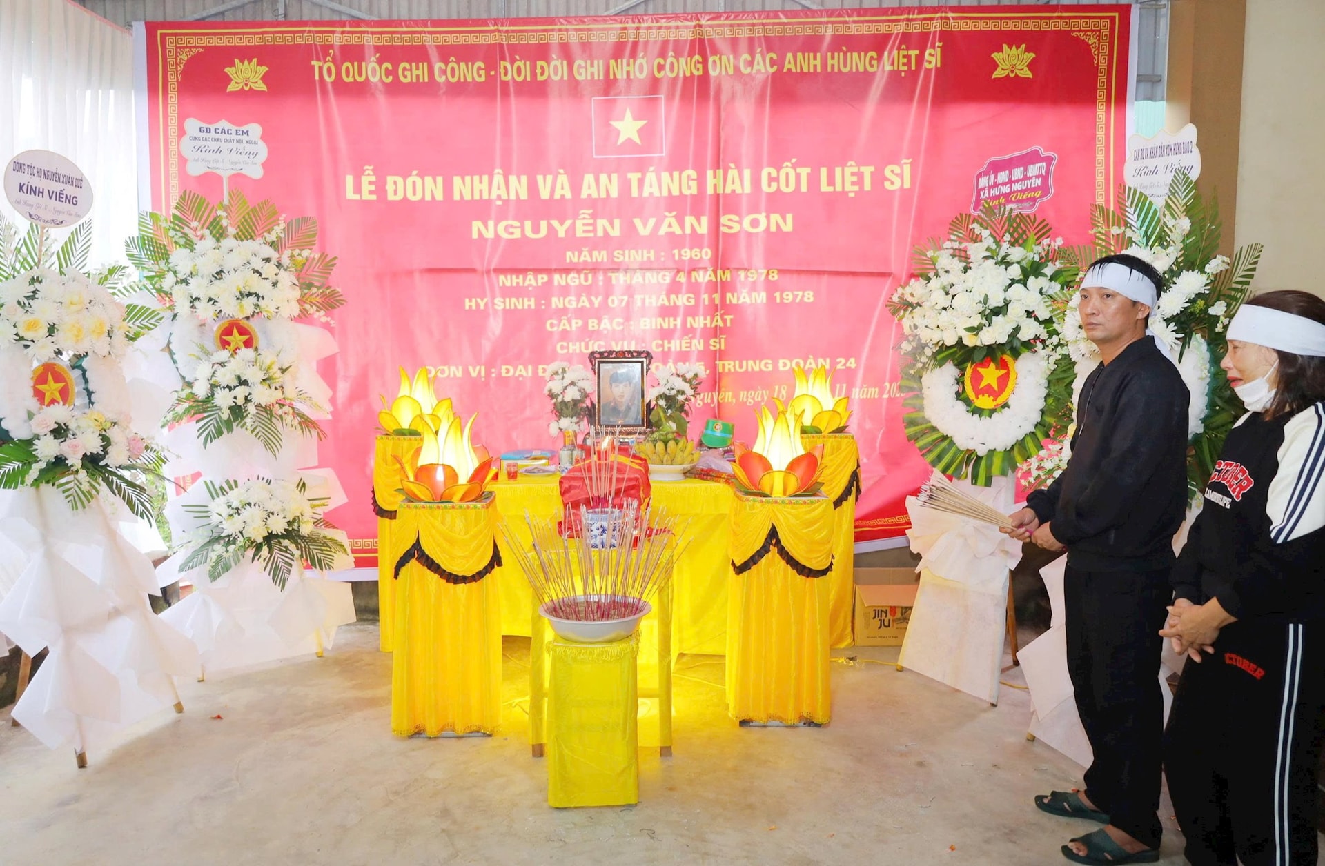 "Nay gia đình chúng tôi mới có điều kiện để đón bác về với quê hương, đoàn tụ cùng ông bà. Chúng tôi rất xúc động khi trời mưa rét nhưng chính quyền xã Hưng Nguyên, anh em, bạn bè, bà con lối xóm đã không quản ngại, ra đường lớn đón hài cốt liệt sỹ Nguyễn Văn Sơn trở về, tổ chức lễ an táng trang nghiêm, trọng thể”, chị Lê chia sẻ. Lễ truy điệu liệt sỹ Nguyễn Văn Sơn sẽ được tổ chức vào chiều 18/11/2025.
