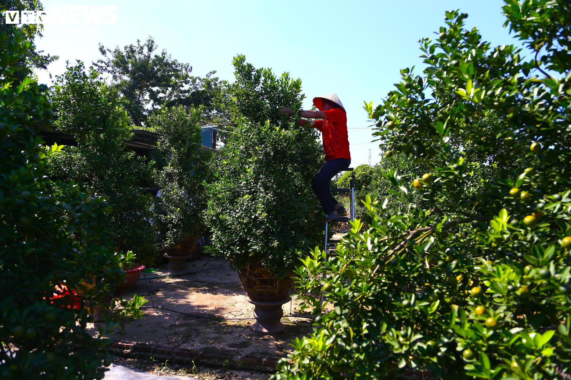 Vào những ngày này, người dân làng quất Tứ Liên đang gấp rút cắt tỉa, tạo dáng, thúc cây chín quả, chuẩn bị cho mùa vụ quan trọng nhất năm.