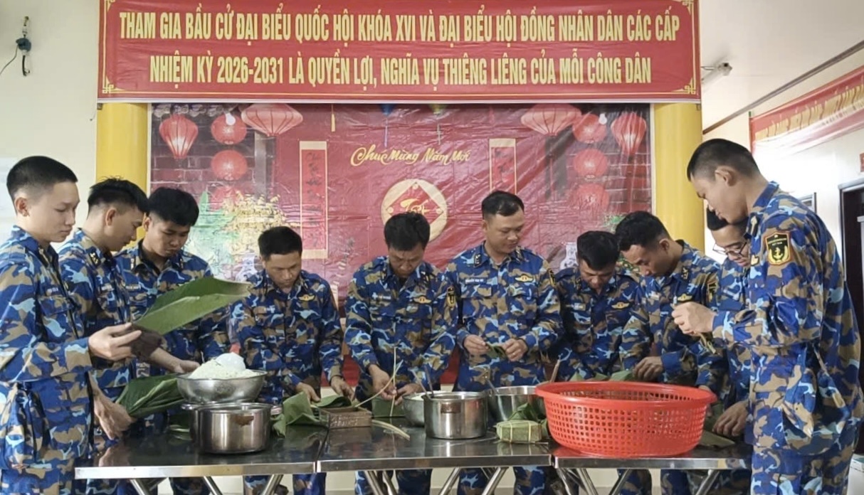 Trung tá Đức Cảnh cho hay, công tác hậu cần phục vụ Tết cũng được chuẩn bị chu đáo. Những nồi bánh chưng đỏ lửa giữa biển khơi, cùng các món ăn mang hương vị vùng miền được cán bộ, chiến sĩ chung tay chuẩn bị. Trên nhà giàn, mỗi người một quê hương, mỗi món ăn là một câu chuyện, một ký ức Tết được sẻ chia, tạo nên không khí ấm áp như trong một gia đình lớn.