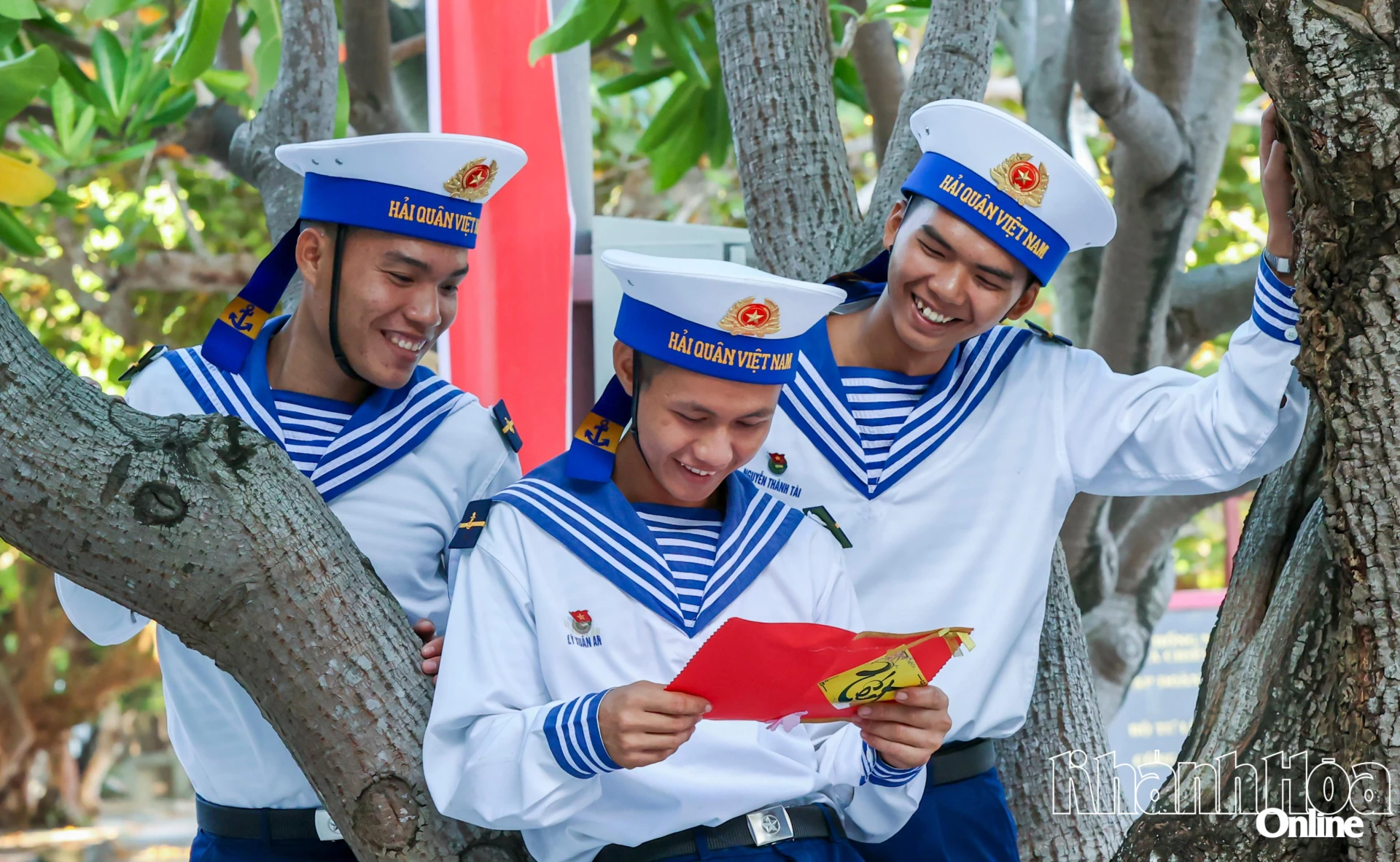 Những người lính Trường Sa đọc thư chúc Tết từ đất liền.