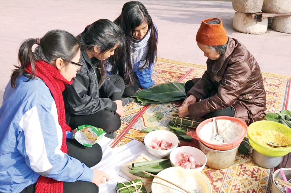 Gói bánh chưng là giây phút gắn kết các thành viên gia đình dịp Tết.