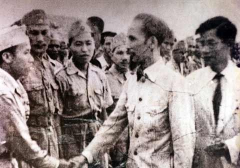 Chủ tịch Hồ Chí Minh đến thăm một đơn vị của Hà Nội. Ảnh tư liệu