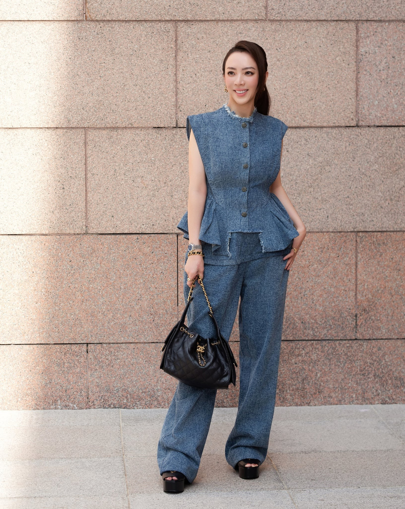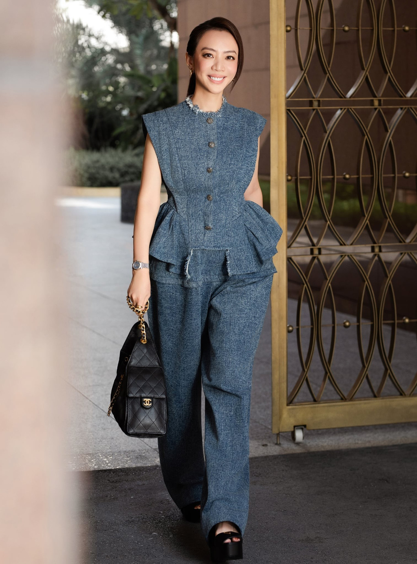 Set trang phục denim giúp Thu Trang nhận nhiều lời khen với phong cách hiện đại, năng động, trẻ trung khi dạo bước xuống phố. Thời gian qua, Thu Trang nhận về nhiều lời khen ngợi về nhan sắc ngày càng trẻ trung, “lão hóa ngược”.