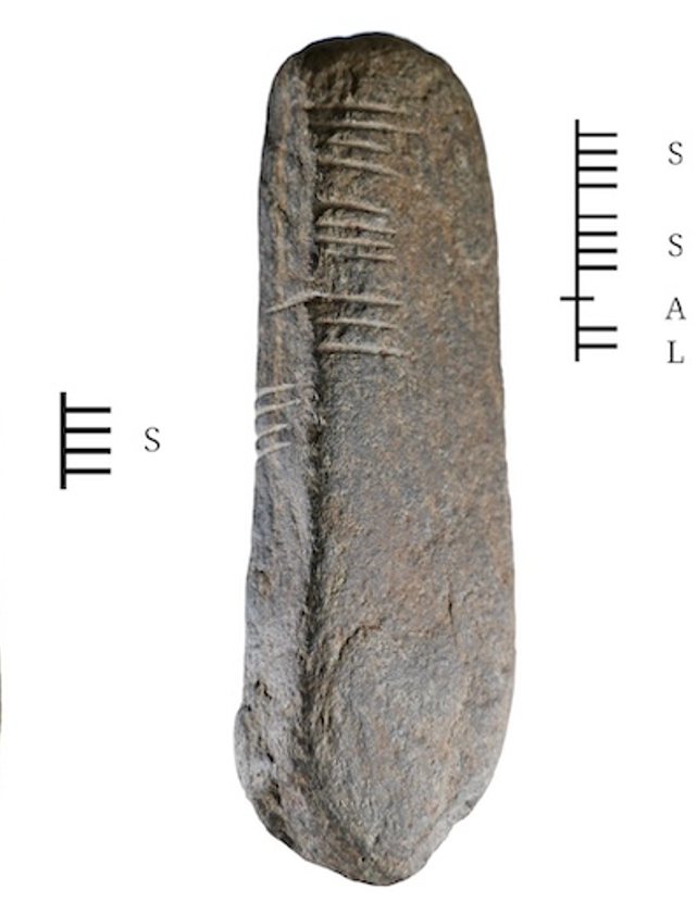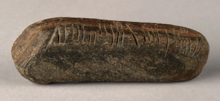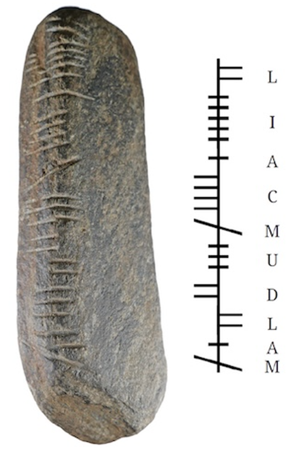 Hòn đá dài 11 cm và nặng 139 gram, có khắc chữ viết Ogham trên ba trong bốn mặt. Ảnh: @Chương trình Cổ vật Di động của Anh.