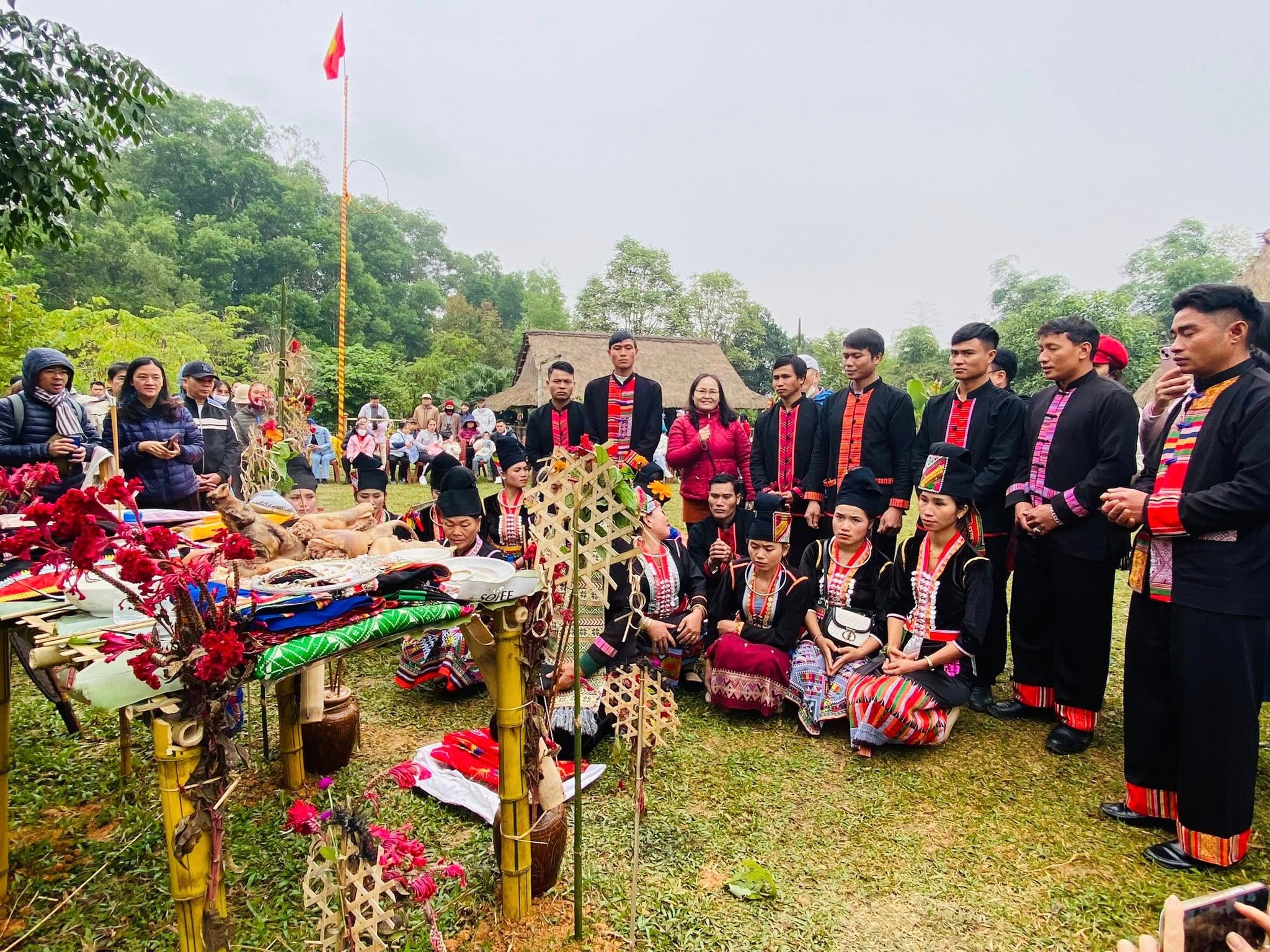 Đồng bào Khơ Mú, Huổi Một, Sơn La tái hiện nghi lễ cầu mùa tại Làng Văn hóa - Du lịch các dân tộc Việt Nam. Ảnh: LVH