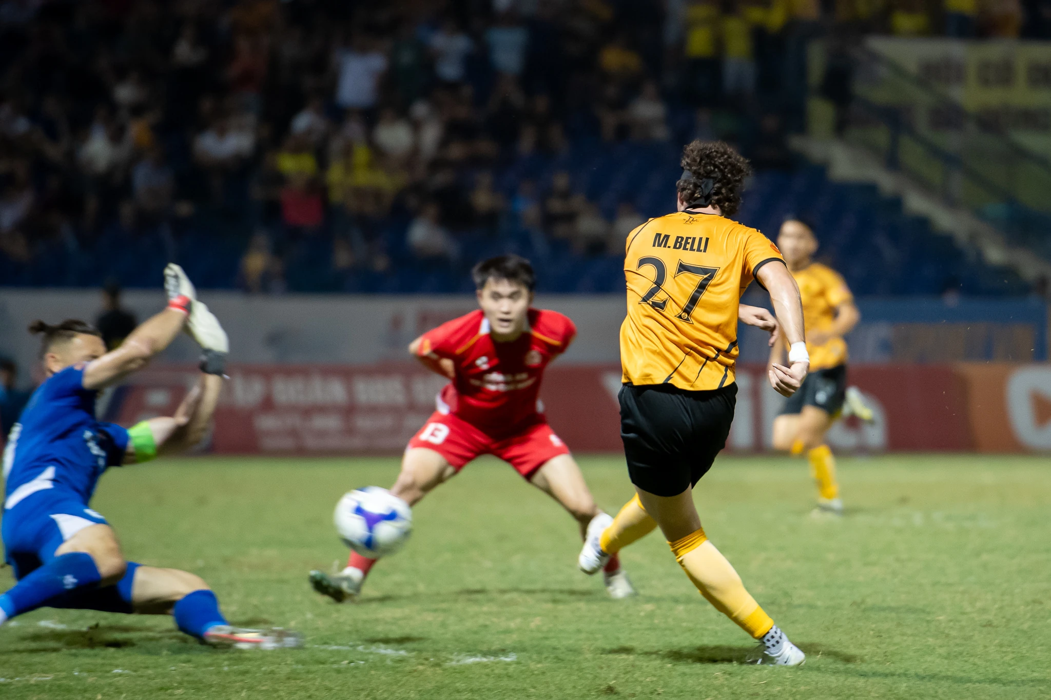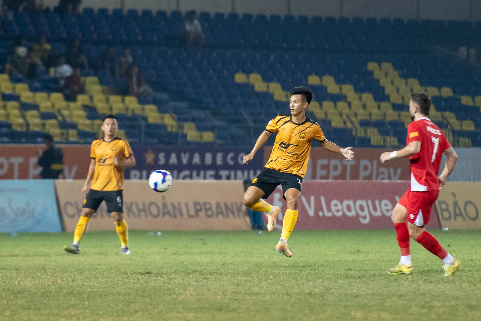 Dù mới được sử dụng từ băng ghế dự bị để làm quen, nhưng Ngô Đức Hoàng (áo vàng) hay Văn Hoàn, Belli phần nào cho thấy tiềm năng, đồng thời giúp Thanh Hóa cải thiện đáng kể chiều sâu đội hình sau giai đoạn thiếu hụt lực lượng.