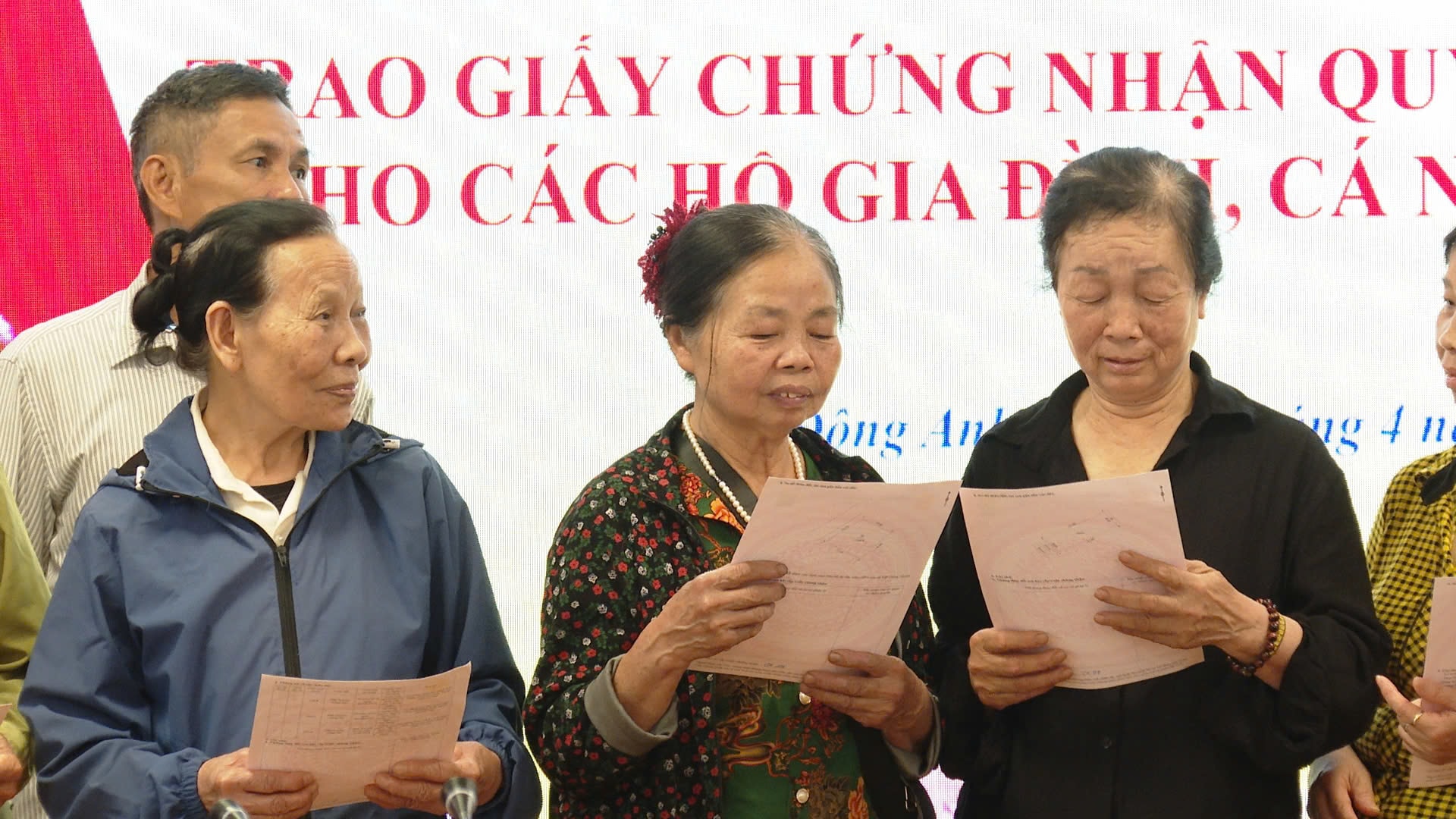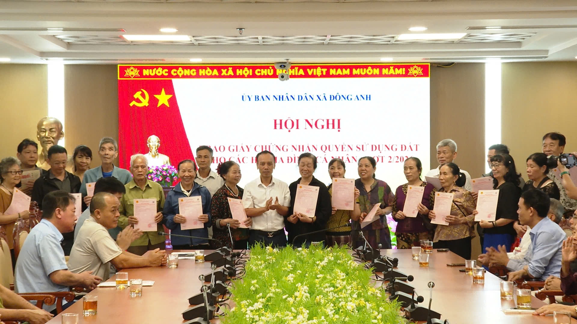 Các hộ dân tại xã Đông Anh nhận Giấy chứng nhận quyền sử dụng đất trong đợt trao sổ đỏ lần 2 năm 2026, đánh dấu bước hoàn thiện thủ tục pháp lý, tạo điều kiện để người dân sớm xây dựng nhà ở và ổn định nơi ở mới. Ảnh:MK