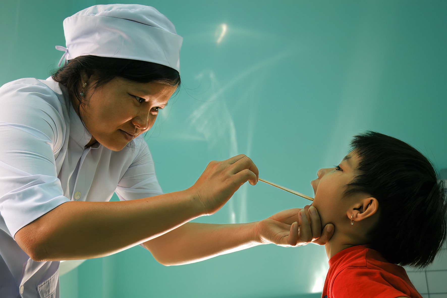 Chăm sóc sức khỏe cho nhân dân ở xã La Dạ. Ảnh: N. Lân