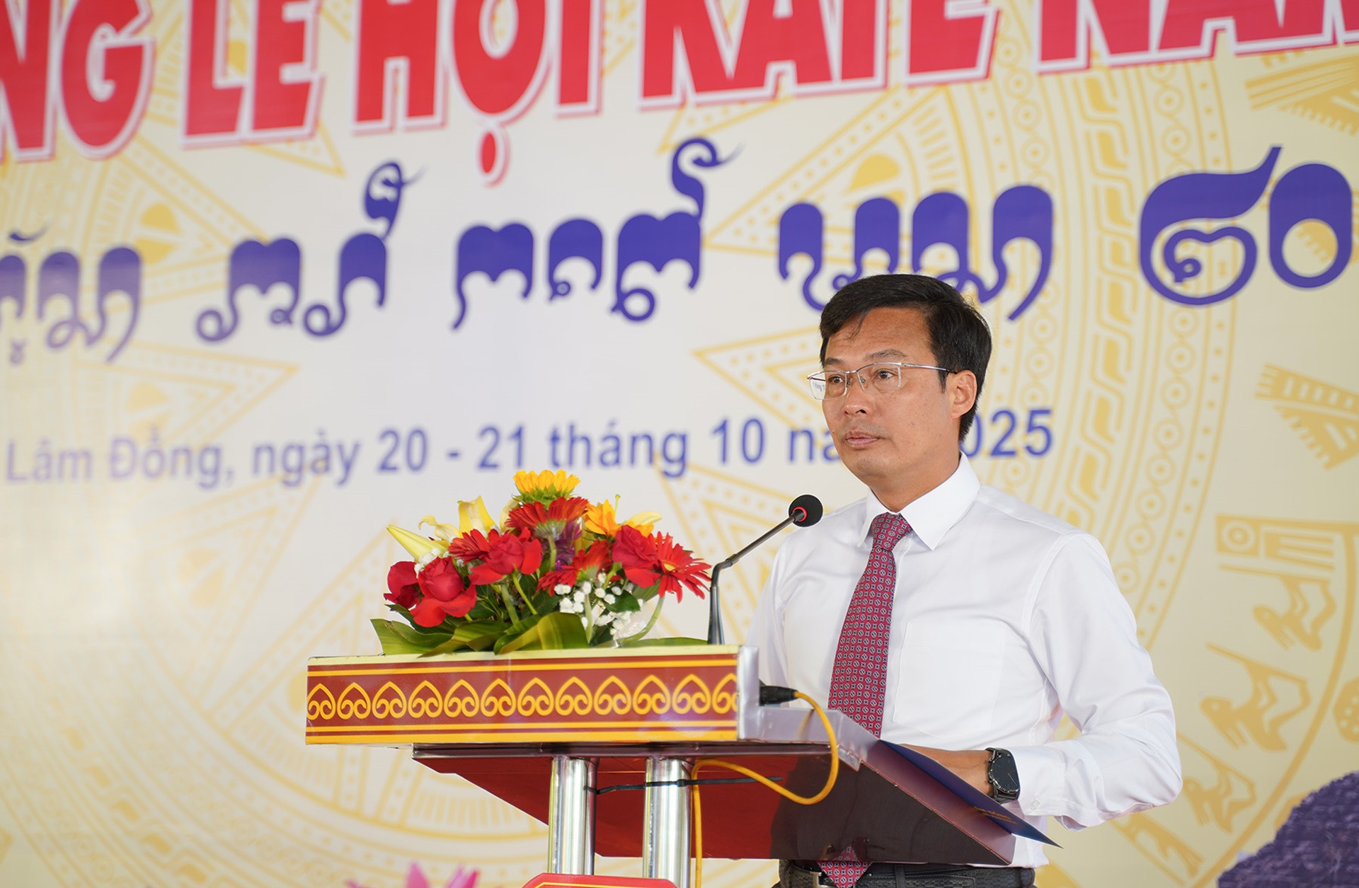 Phát biểu khai mạc, Phó chủ tịch UBND tỉnh Lâm Đồng Đinh Văn Tuấn nhấn mạnh, lễ hội Katê năm nay không chỉ là dịp để đồng bào Chăm thể hiện tín ngưỡng, nét đẹp văn hóa dân gian mà còn là hoạt động chào mừng thành công Đại hội Đảng bộ tỉnh lần thứ 1, nhiệm kỳ 2025-2030.