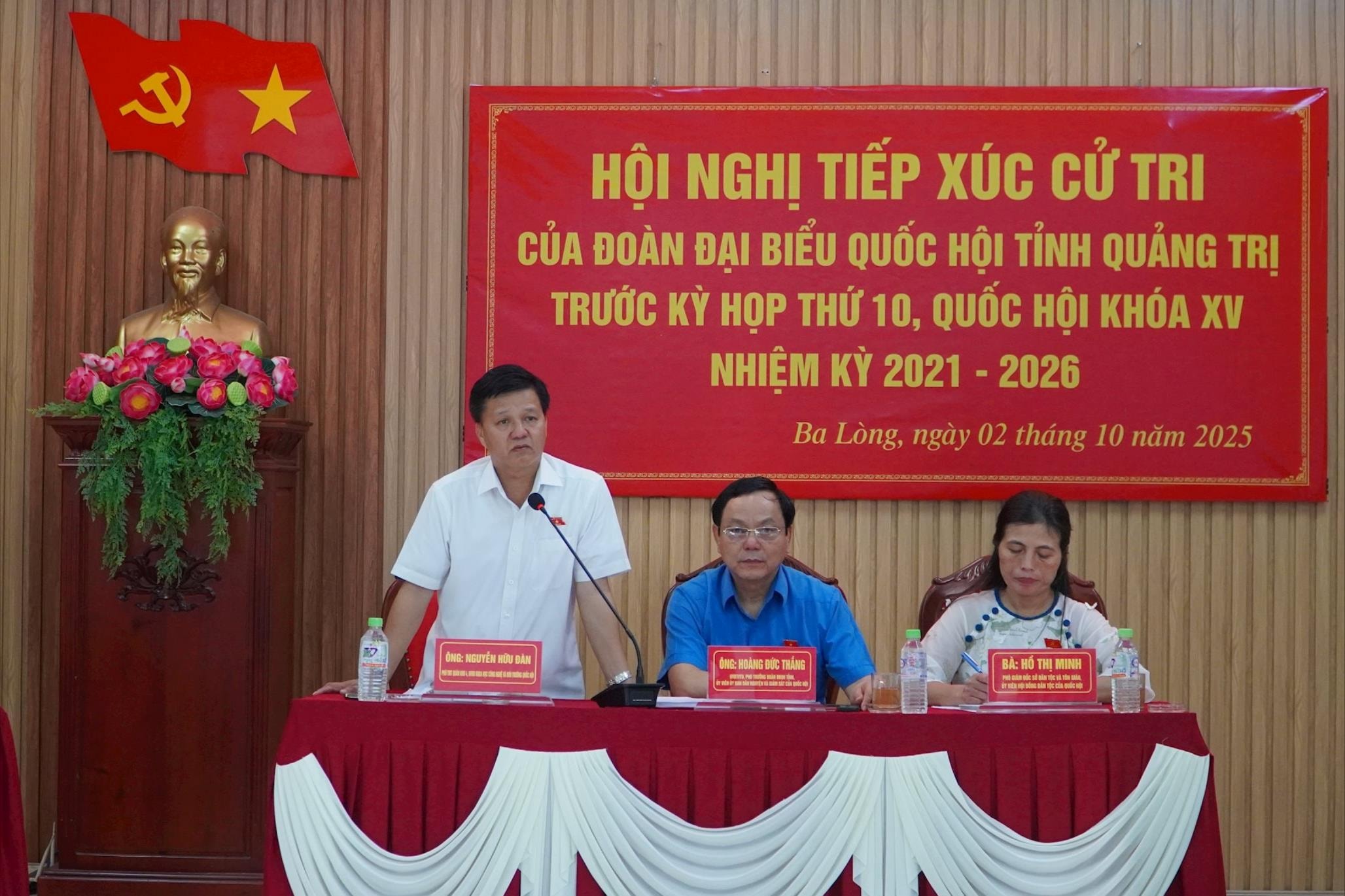 Tại xã Ba Lòng, cử tri bày tỏ lo ngại về tình trạng sạt lở bờ sông Ba Lòng do hoạt động khai thác cát sỏi và kiến nghị trồng cây nhằm chống xói lở và nâng cấp ngầm tràn Ba Lòng, Triệu Nguyên. Cử tri cũng mong muốn có chính sách, phụ cấp tốt hơn cho các vị trí như: Trưởng thôn, Bí thư chi bộ, cựu chiến binh và thanh niên xung phong.