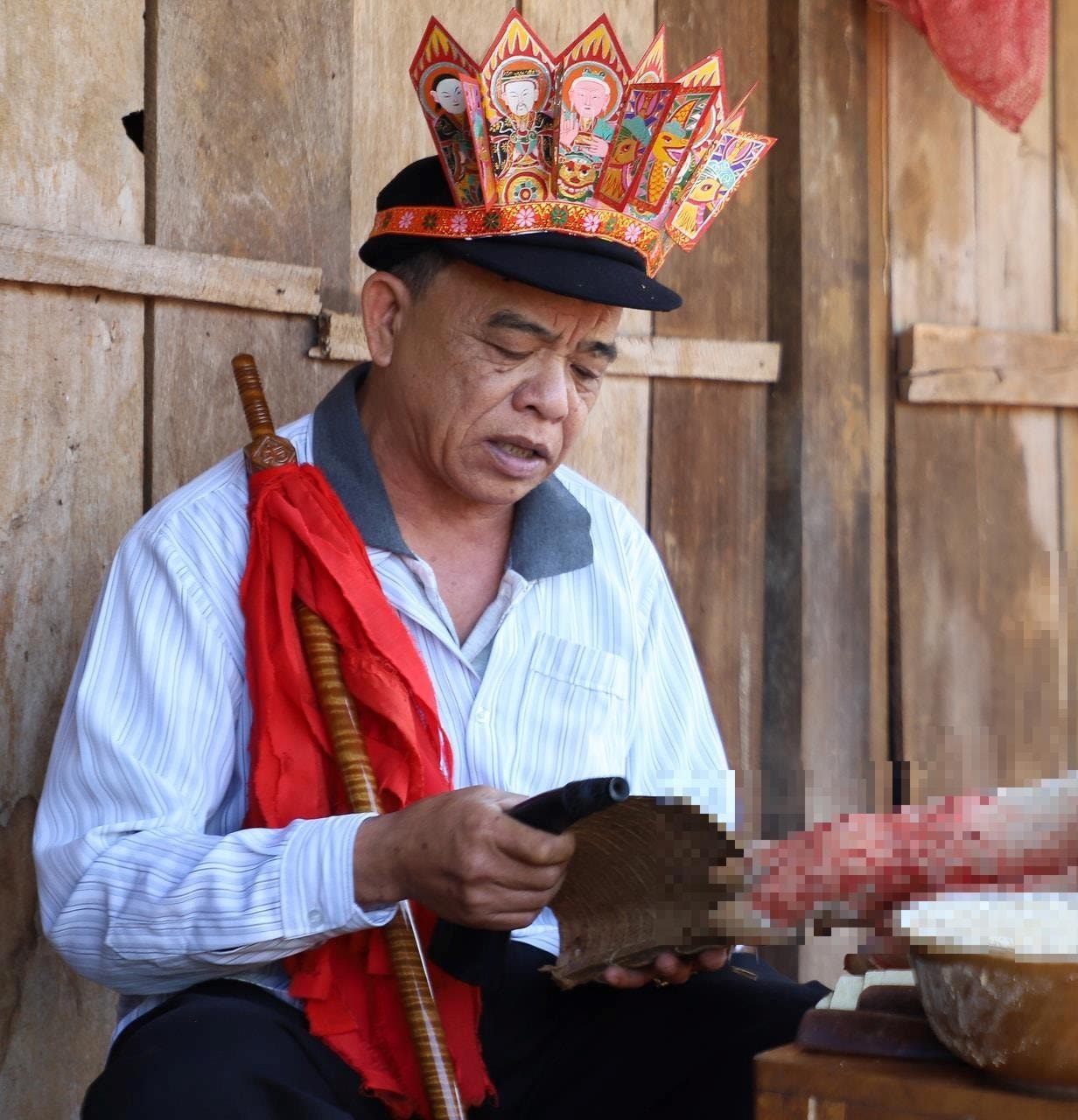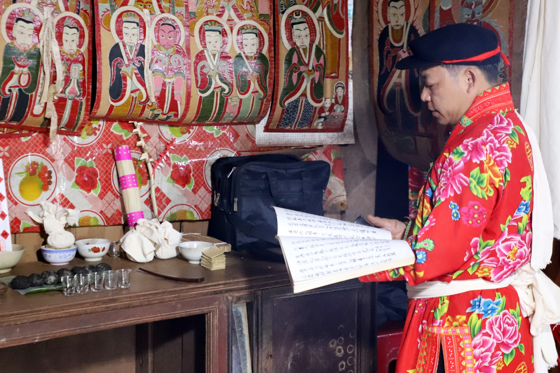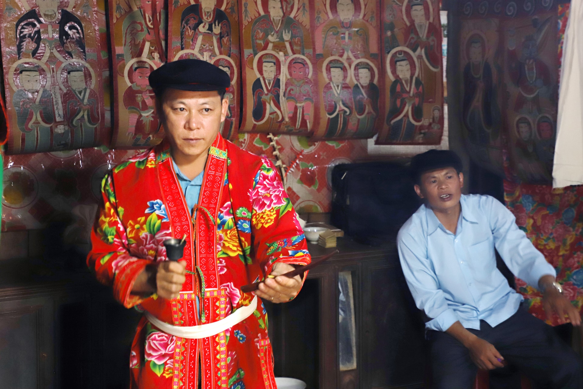 Thầy mo thực hiện nghi thức trong lễ cấp sắc của đồng bào Dao đỏ