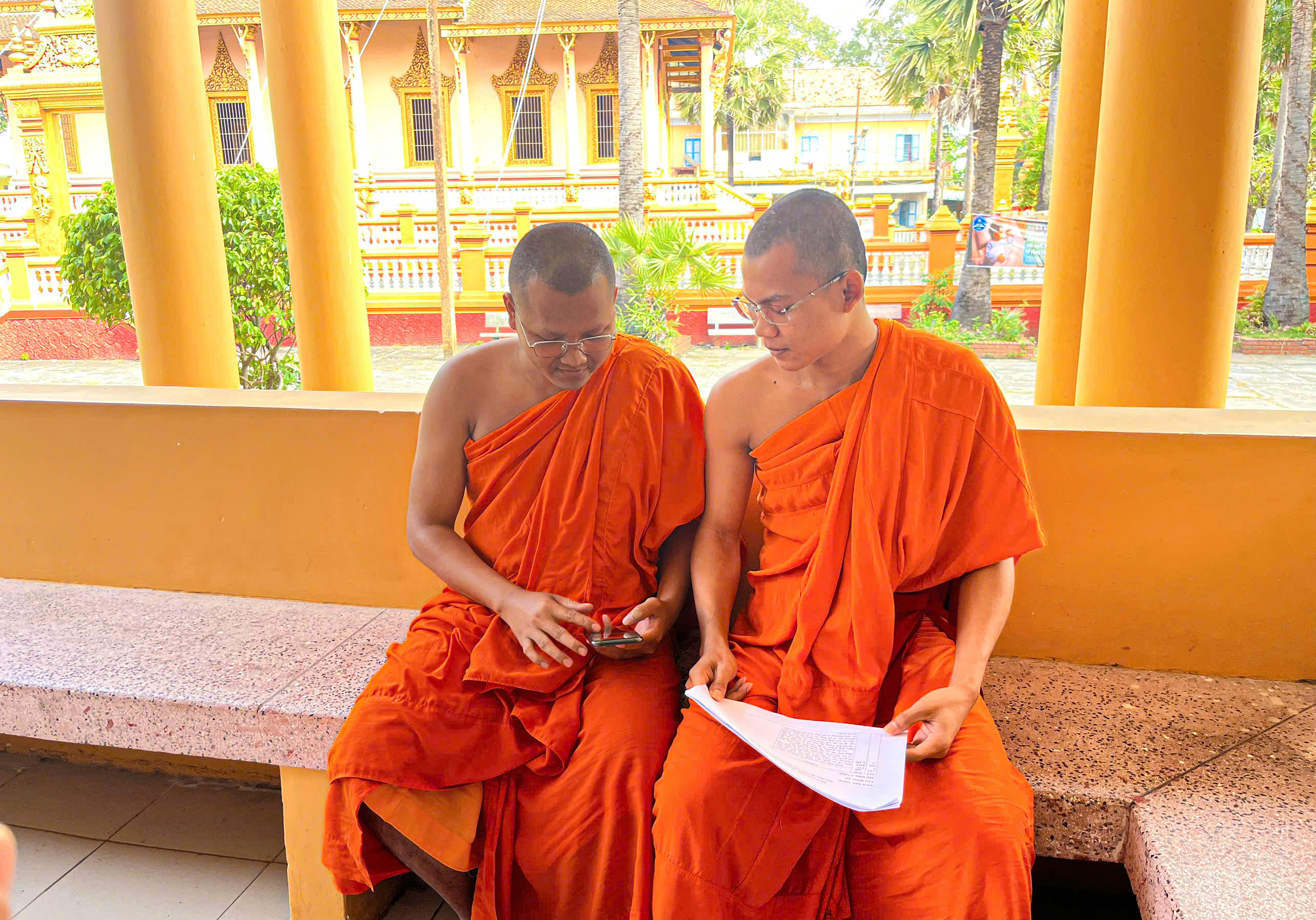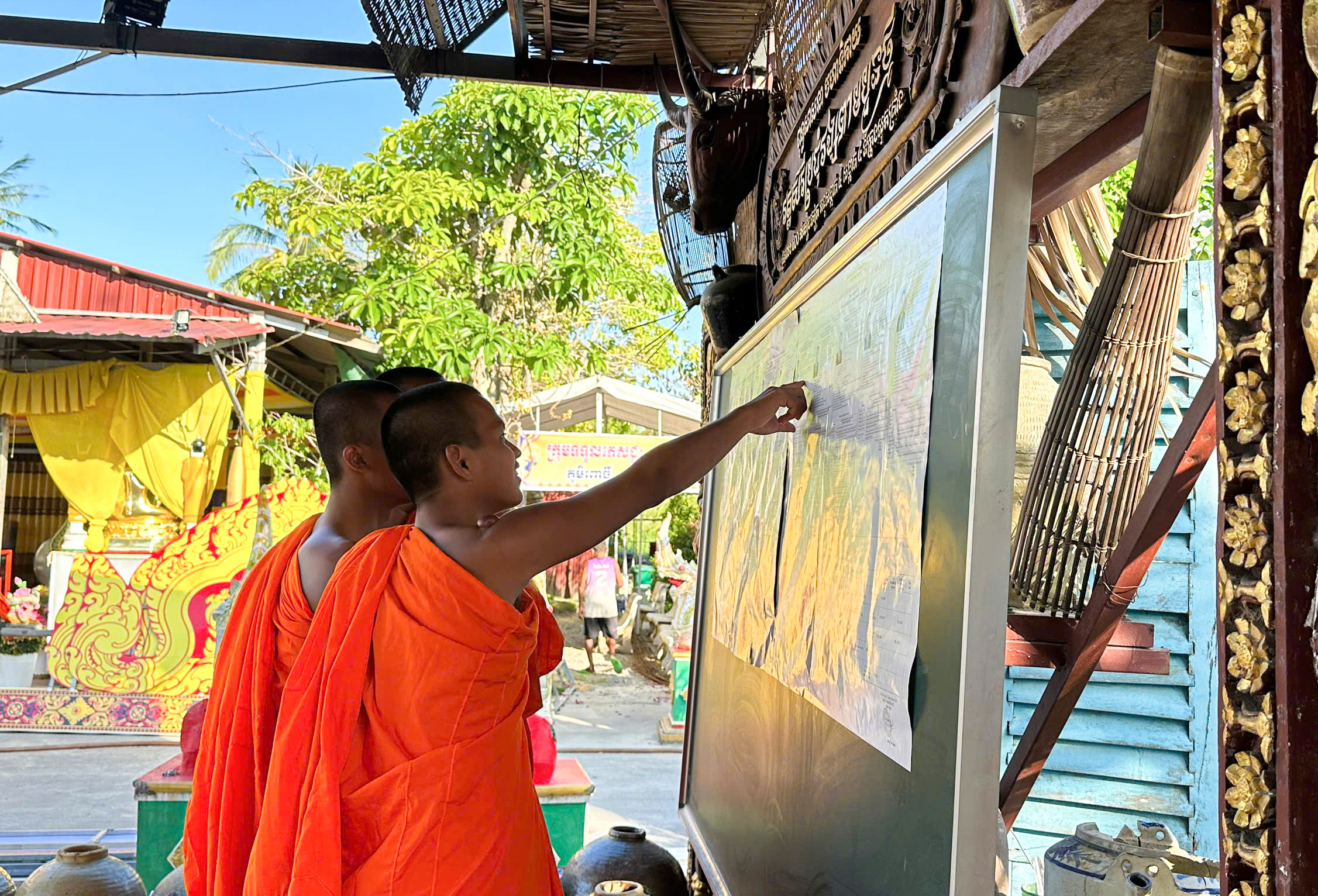Các sư ở chùa Peam Buôl Thmây (phường Phú Lợi, TP Cần Thơ) tìm hiểu thông tin về các ứng cử viên