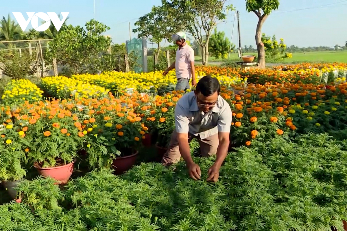 Nhiều hộ đồng bào Khmer Vĩnh Long xem trồng hoa phục vụ Tết là cơ hội kiếm thu nhập.